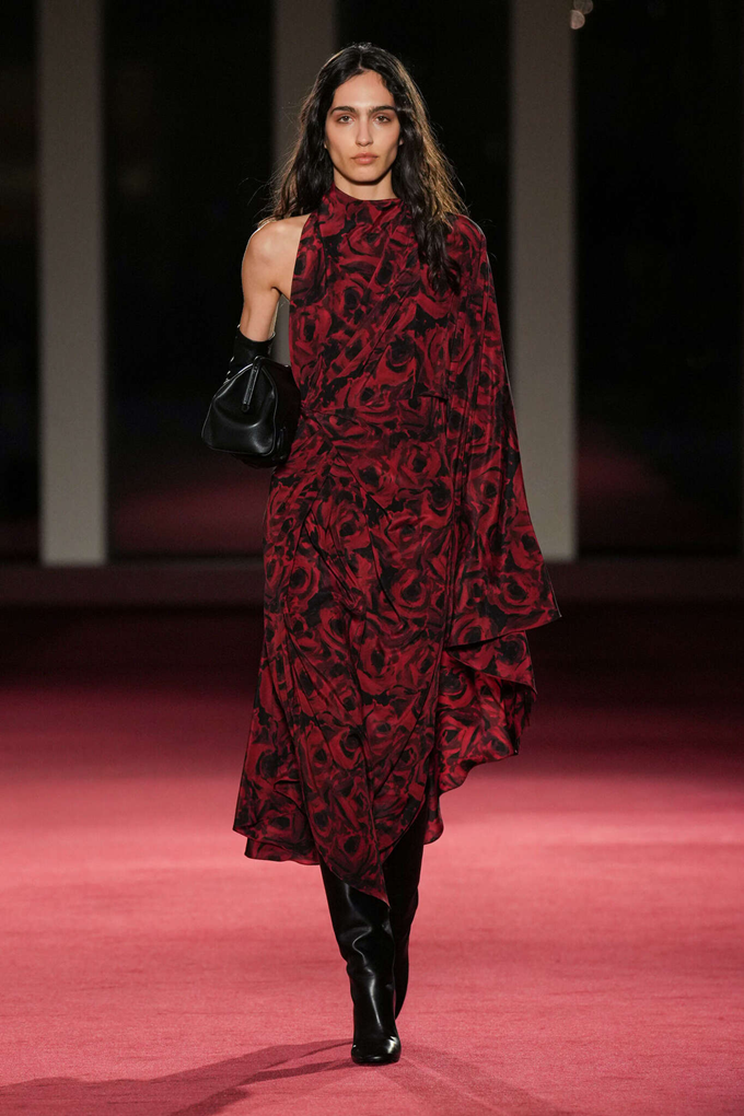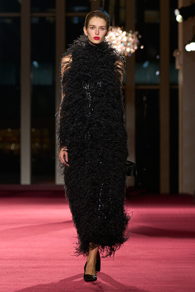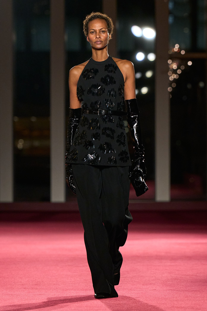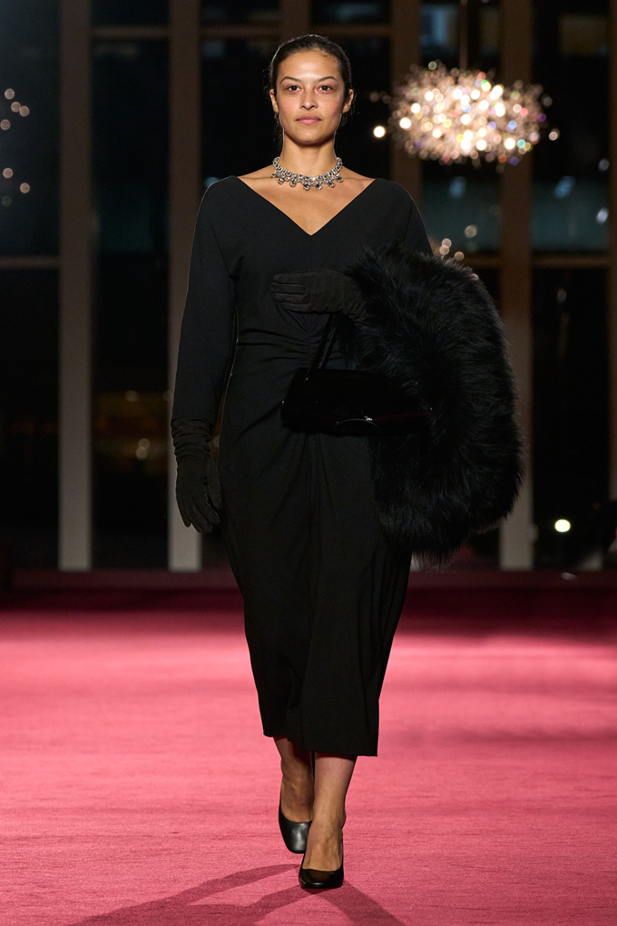 마이클 코어스 컬렉션의 45주년을 기념하는 이번 쇼는 고급스러운 질감, 조각 같은 테일러링, 강렬한 레드와 블랙 조합, 그리고 은은한 뉴욕의 화려함을 담은 모던 글램룩으로션으로 뉴욕의 상징적인 음과 양을 담아냈다.