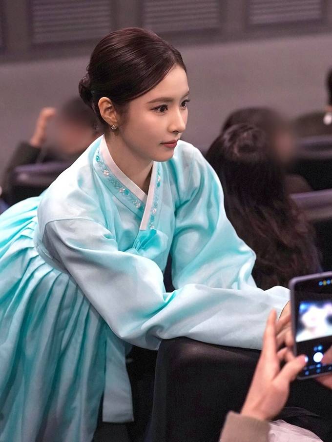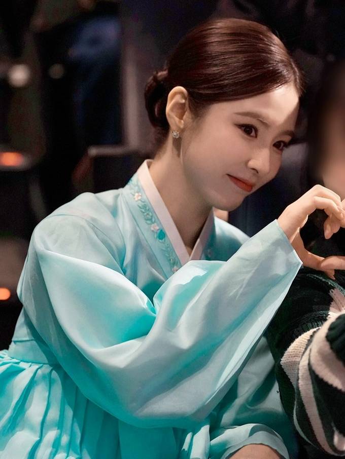 청아한 푸른빛 한복을 완벽하게 소화한 신세경은 단순한 의상을 넘어 하나의 작품 같은 분위기를 연출하며, 전통 패션이 지닌 timeless한 아름다움을 다시 한번 입증했다.