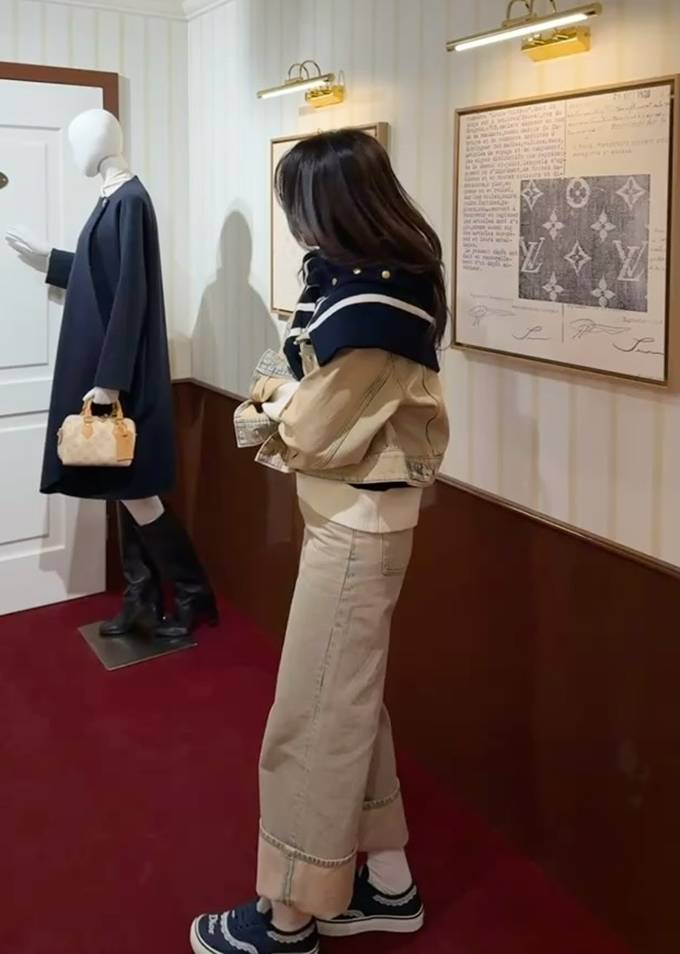 일반적인 블루 데님이 아닌 부드러운 샌드 컬러 데님을 선택해 한층 따뜻하고 내추럴한 무드를 강조한 것이 포인트다.