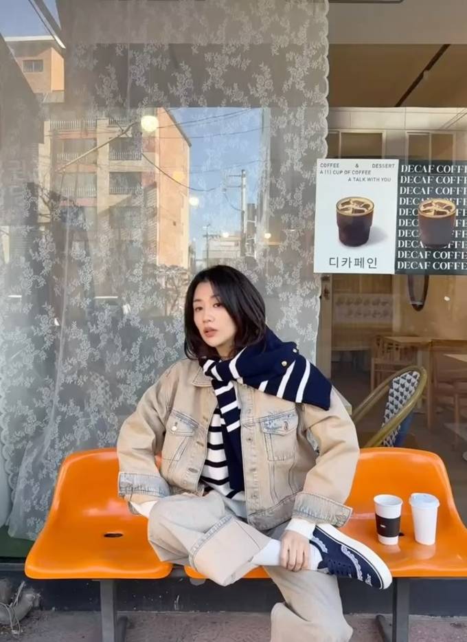 박하선은 부드러운 샌드 톤의 데님 재킷과 팬츠를 매치한 톤온톤 청청패션으로 한층 따뜻하고 내추럴한 무드를 강조한 것이 포인트다. 여기에 아이보리 니트를 레이어드해 계절감과 포근함을 동시에 살렸다.