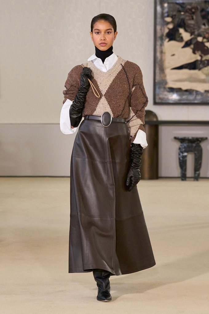 전통적인 리듬을 현대적으로 재해석한 니트 랩 스커트, 프린지 장식 트위드 스커트는 루이스 부뉴엘의 영화 <부르주아의 은밀한 매력>에서 느껴지는 반항적인 우아함을 떠올리게 하고, 익숙한 형태에 해체적인 실루엣과 파격적인 변화를 시도했다.