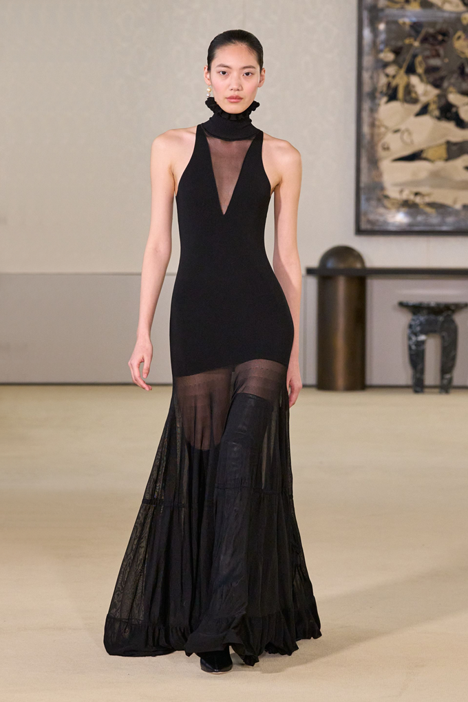 셔츠와 드레스 어깨 부분에 달린 폼폼 프린지 장식은 역동적임 움직임을 더했으며 심플한 터틀넥은 케이프를 더해 절제된 드라마틱함을 선사했다.