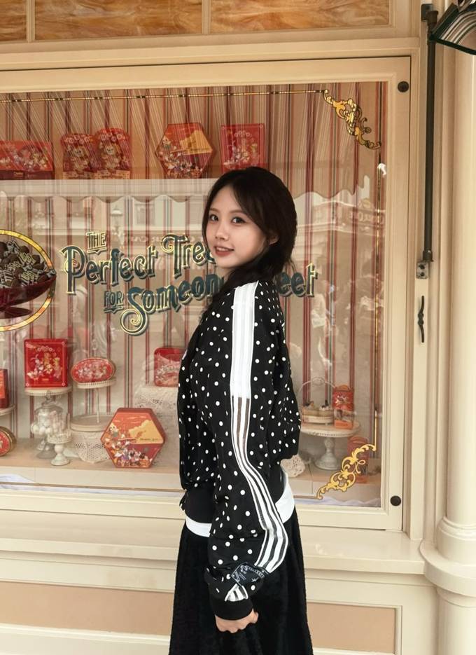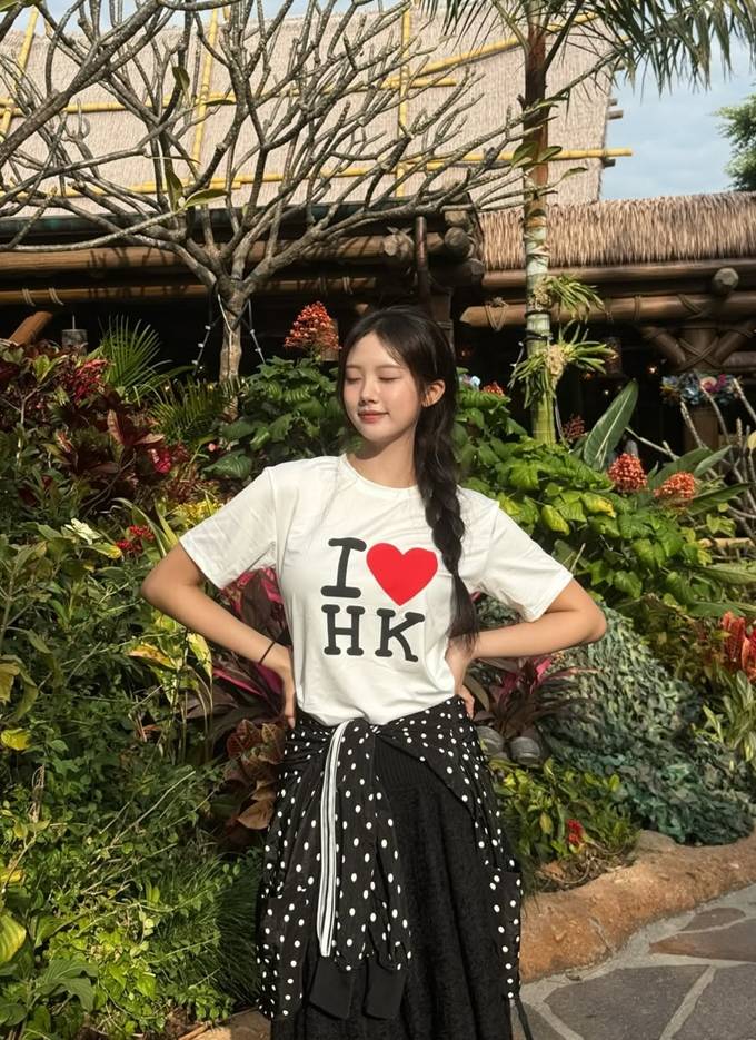 공개한 사진에서 재시는 “I♥HK”이라는 글이 디자인된 화이트 레터링 티셔츠에 블랙 땡땡이 집업 재킷을 걸친 여행룩으로 청순하면서도 발랄한 대학생 여친 같은 스타일을 연출했다.