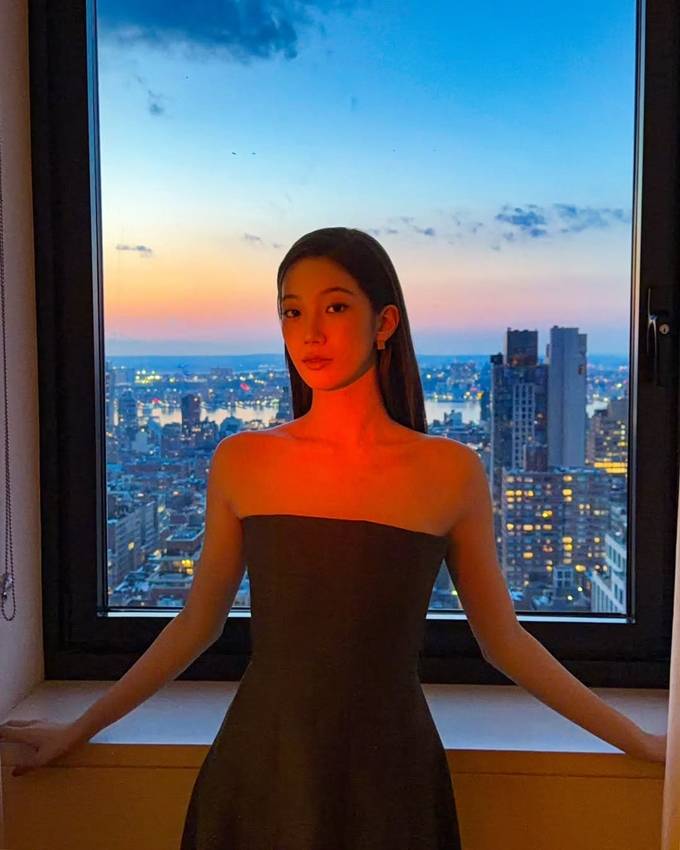 르세라핌 카즈하, 발레리나 다운 우아한 절제미! 뉴욕패션위크 휩쓴 튜브톱 드레스룩