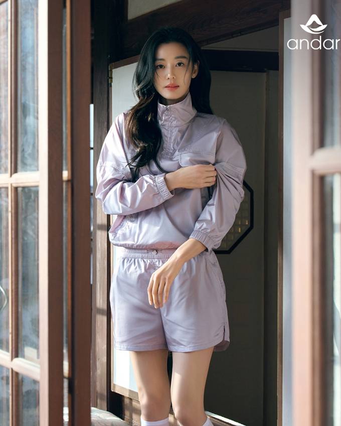 전지현은 애슬레저 브랜드 안다르와 함께한 2026년 봄여름 시즌 화보에서 고즈넉한 한옥을 배경으로 특유의 고급스럽고 세련된 무드의 애슬레저 스타일을 선보였다.