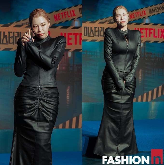 안무가 가비가 탄탄한 머메이드 올 블랙 레더 핏으로 시선을 사로잡았다.