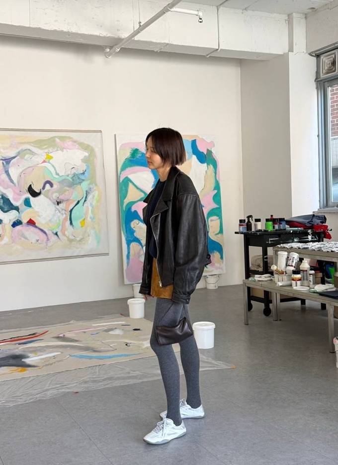 공개한 사진에서 김나영은 늘씬 각선미가 드러난 타이즈와 짧은 미니 스커트를 입고 오버핏 가죽 집업 재킷을 걸친 외출룩으로 걸리시하면서도 힙한 봄 패션을 완성했다.