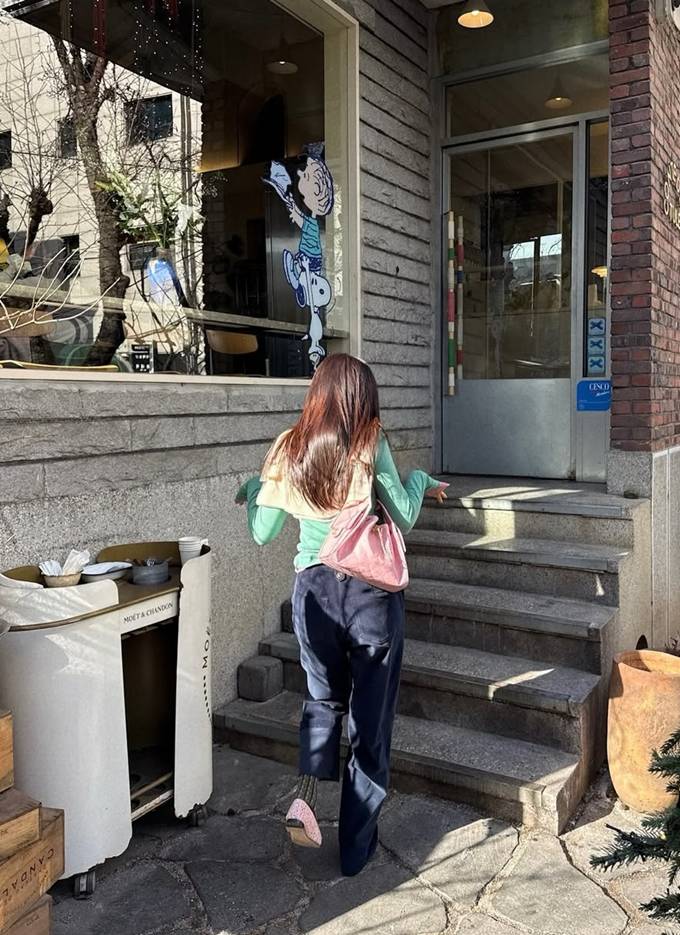 또 여기에 핑크 핸드백을 어깨에 걸쳐 패션에도 봄이 왔음을 알렸다.