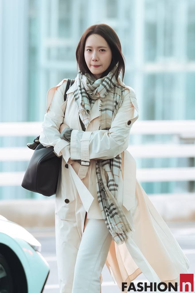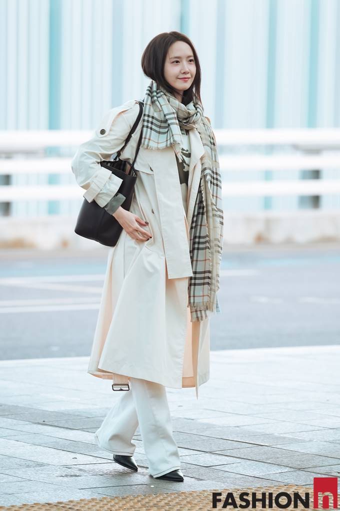 이날 윤아는 전통적인 디자인의 클래식한 트렌치 코트와 여기에 체크 머플러를 무심하게 두른 트렌치 스타일로 눈길을 사로잡았다.