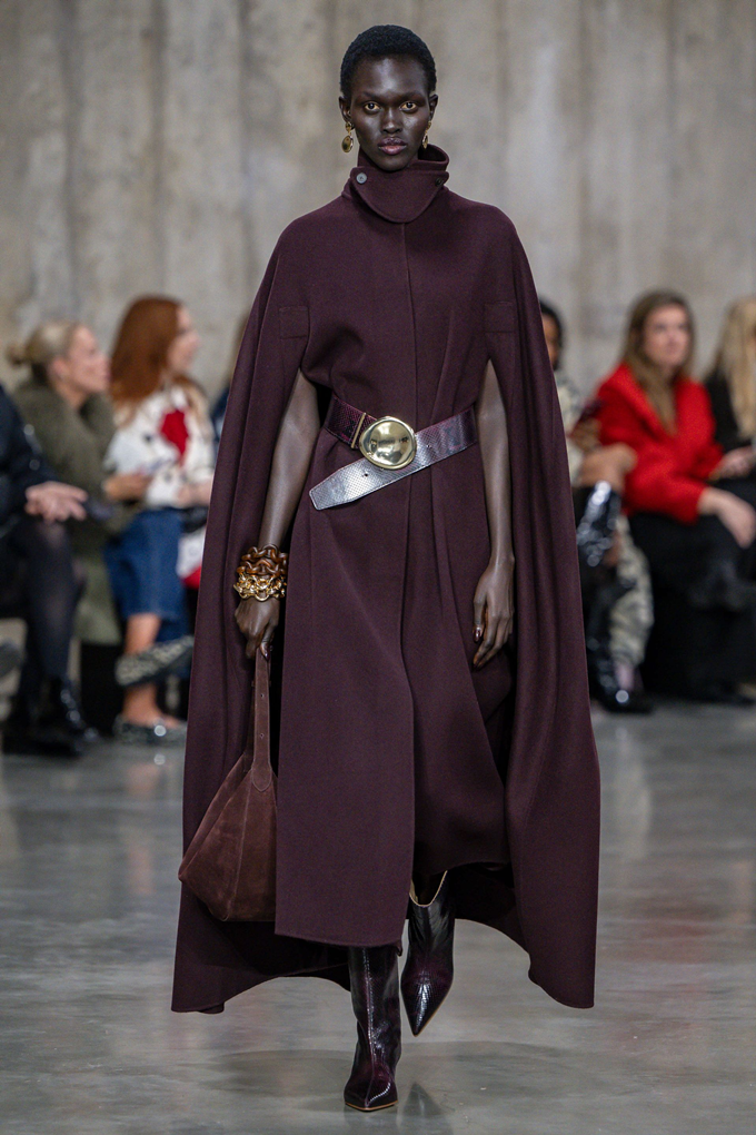 유려한 헤링본 코트나, 풍성한 소매단이 돋보이는 크림색 울 코트, 올리브와 버건디 색상의 롱 케이프와 케이프 코트는 드라마틱한 분위기의 은은한 빅토리아풍 감성을 불어넣었다.