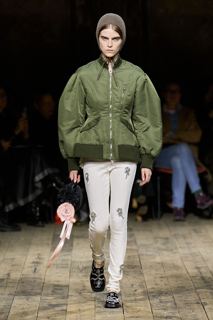 아디다스와 협업으로 탄생한 삼선 트랙 재킷과 바시티 재킷, 핑크 러플 장식을 더한 삼선 티셔츠를 비롯해 아디다스 재킷과 러플 스커트 조합은 스포츠 패션 협업을 새로운 차원으로 끌어올렸다.