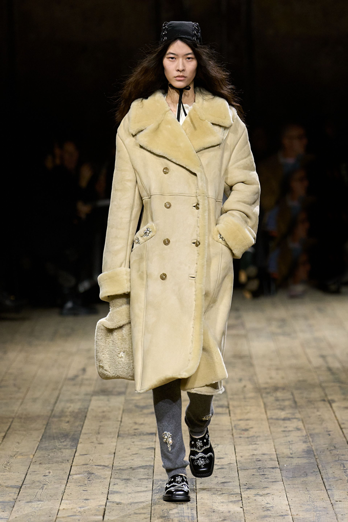 풍성한 시어링은 니트, 야상 재킷, 더블 브레스트 재킷, 봄버 재킷 등에 포인트 디테일로 활용되었으며 갈색 인조 모피는 코트를 장식하거나 소매로 사용되었다.