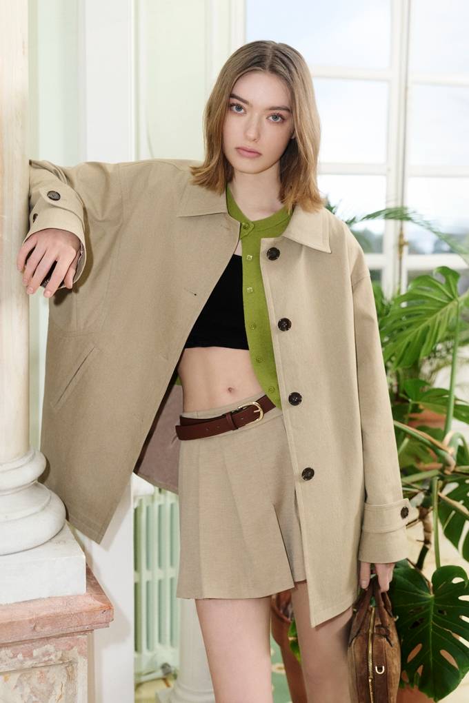 봄 시즌은 데일리 무드의 트렌치 코트와 테일러링 재킷을 중심으로 전개되며, 레더 소재 아이템을 더해 도시적인 세련미를 완성했다.