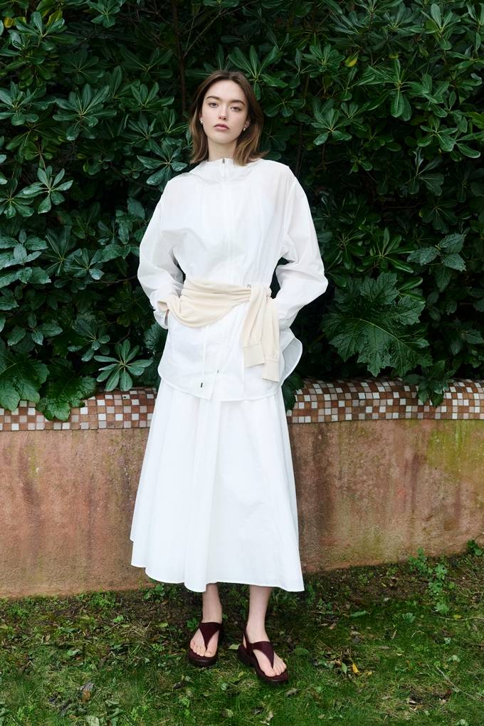 바람을 머금은 듯한 라이트한 소재와 간결한 라인은 한층 부드럽고 편안한 분위기를 연출하며 여름 특유의 맑고 선명한 계절감을 완성했다.