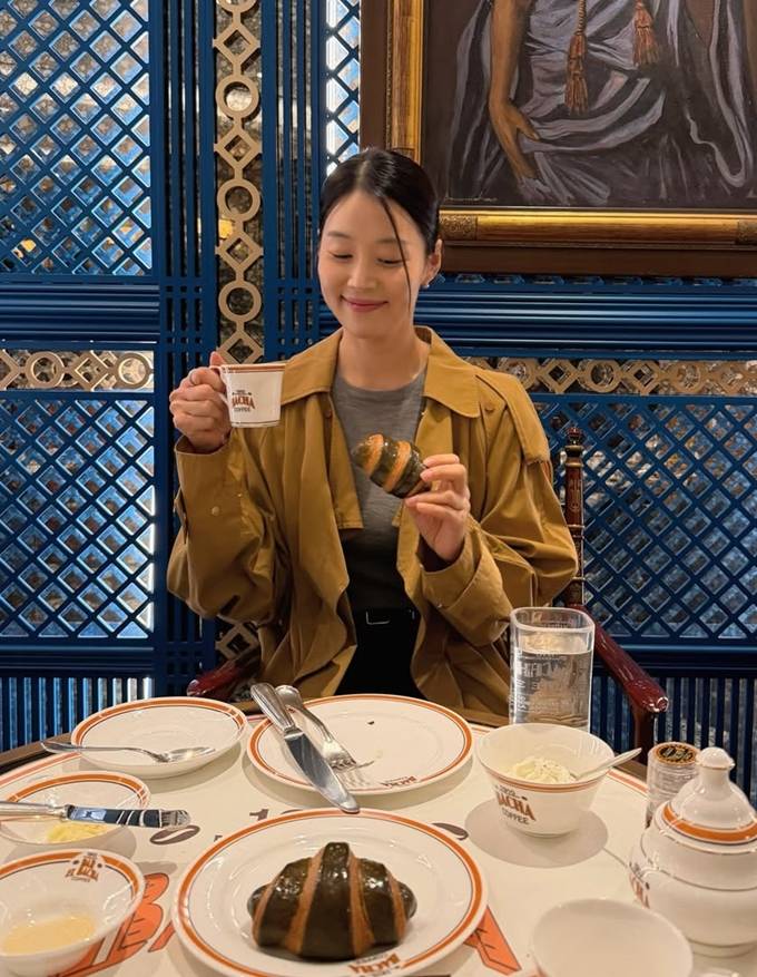 한지혜는 24일 자신의 채널에 “선물로 너무 좋은 OO커피, 커피와 함께 먹는 크로와상도 너무 맛있어”라는 글과 함께 청담동 외출 사진을 게재했다.