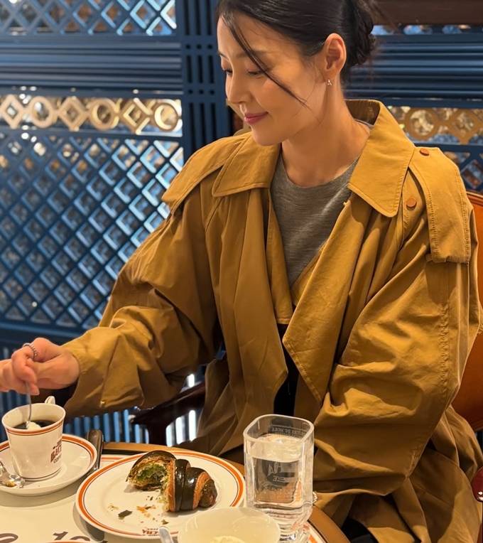 배우 한지혜가 루즈 핏 트렌치코트 하나로 옷 태나는 봄 외출 스타일을 완성했다.