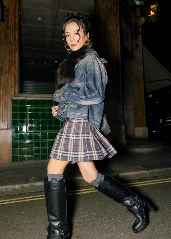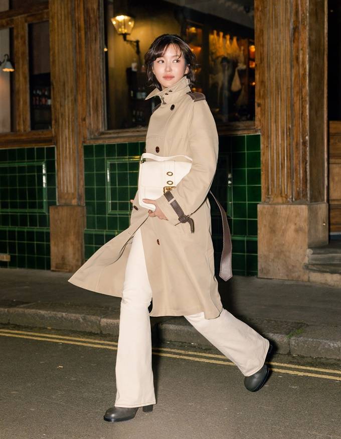 윤아 역시 런던 거리에서 카메라에 포착됐다. 버버리의 아이코닉한 트렌치코트와 미니 킬트 스커트를 매치해 우아하면서도 클래식한 매력을 발산했다.