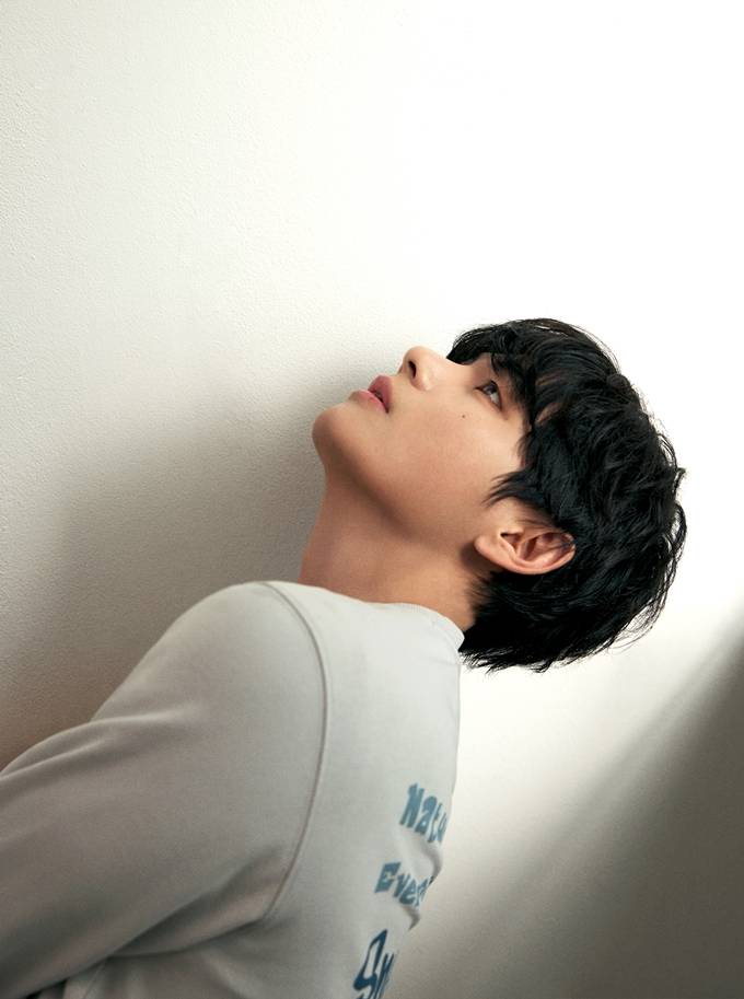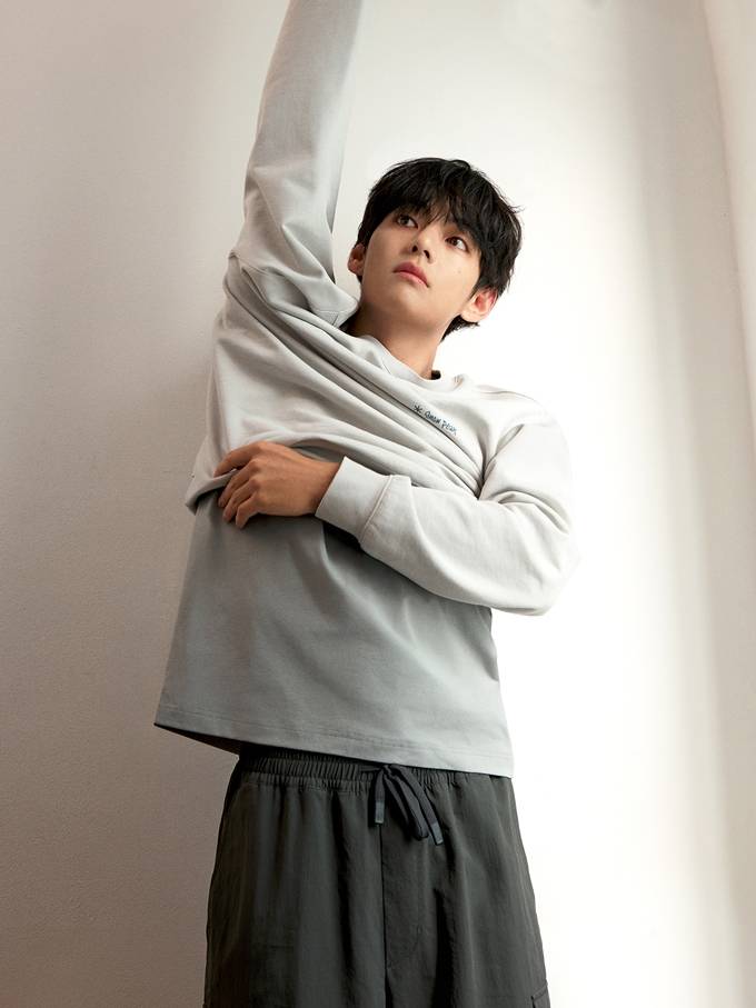 화보 속 뷔는 레이어드 스타일을 중심으로 익숙한 맨투맨 아이템에 컬러 포인트를 더해 가볍지만 센스 있는 스타일을 완성했다. 또한 루트 바람막이 재킷과 셋업을 활용해 깔끔하고 안정적인 스타일을 선보인다.