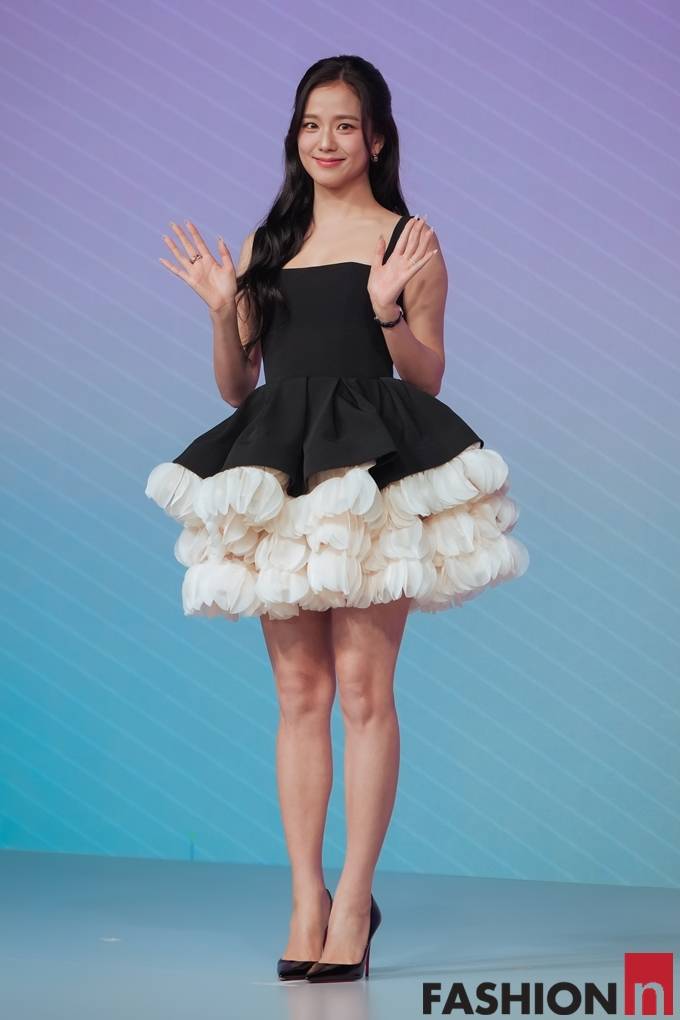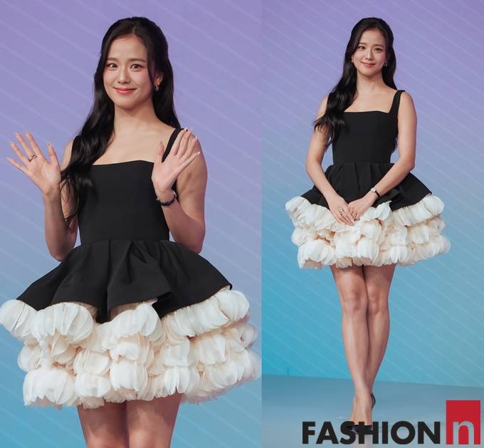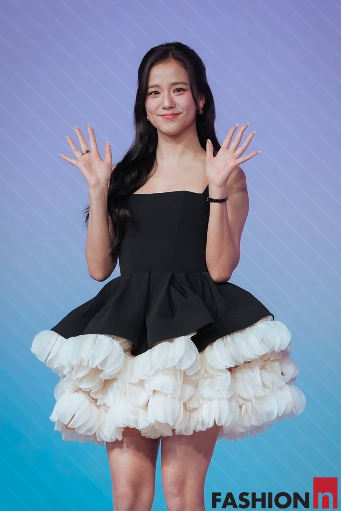 그룹 블랙핑크 지수가 러블리한 티어드 튤 스커트 드레스룩으로 로코 퀸으로 변신했다.