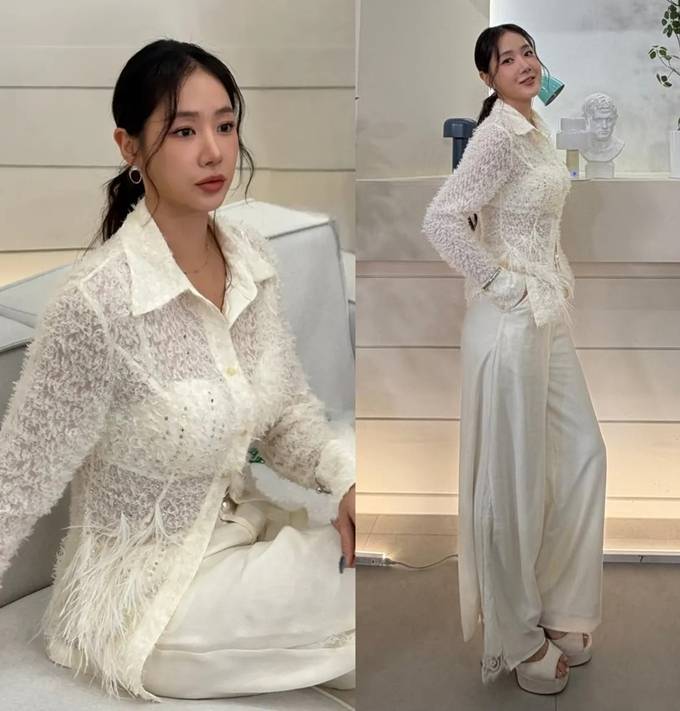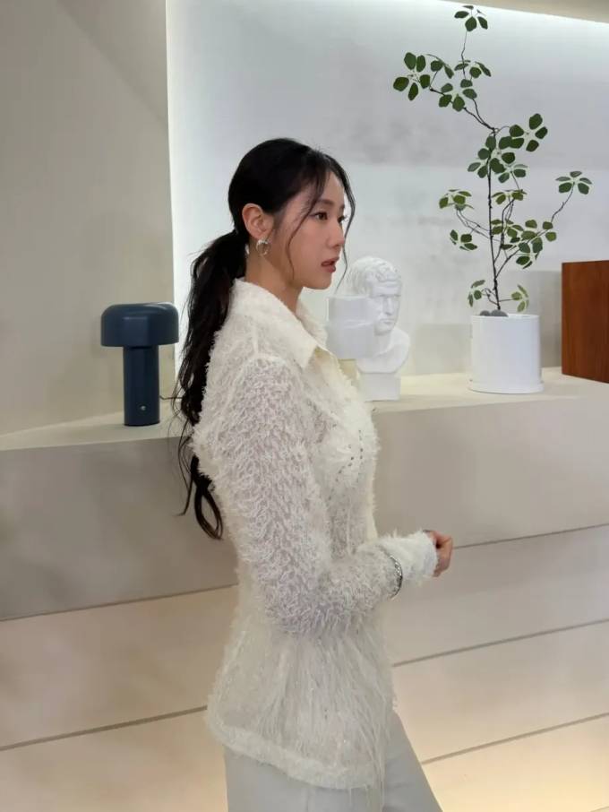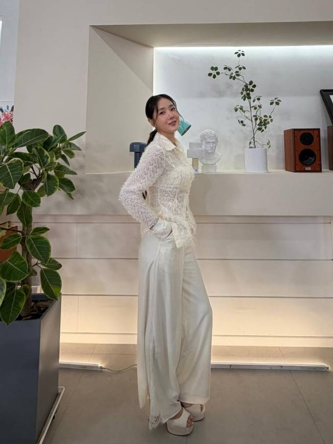 공개한 사진에서 소유는 은은하게 비치는 시스루 소재의 셔켓에 와이드 핏 팬츠를 매치해 편안하면서도 세련된 실루엣을 강조했다.