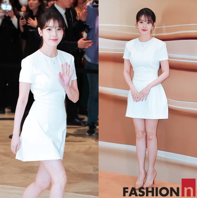 이날 행사에서 아이유는 가녀린 실루엣이 돋보이는 화이트 리틀 원피스룩으로 청순하며서도 러블리한 스타일을 선보였다.