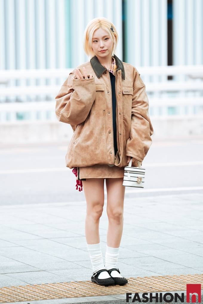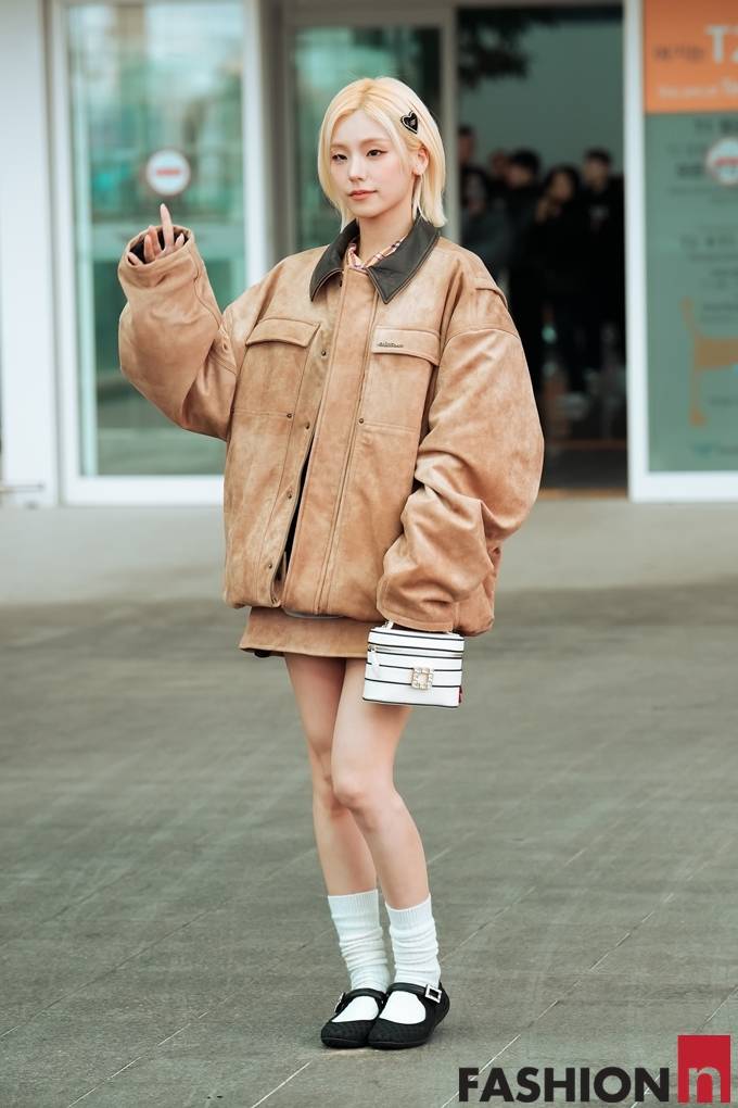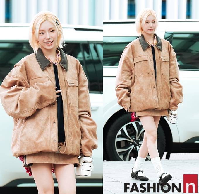 그룹 있지(ITZY)의 예지가 오버핏 레더 재킷의 박시한 출국룩으로 골드빛 요정미를 발산했다.
