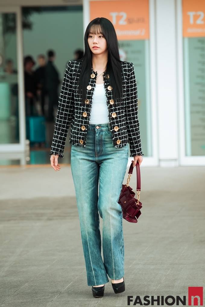 [패션엔 포토] 혜리, 출국길에 빛난 청순 프렌치 시크! 데님&트위드 파리 출국룩