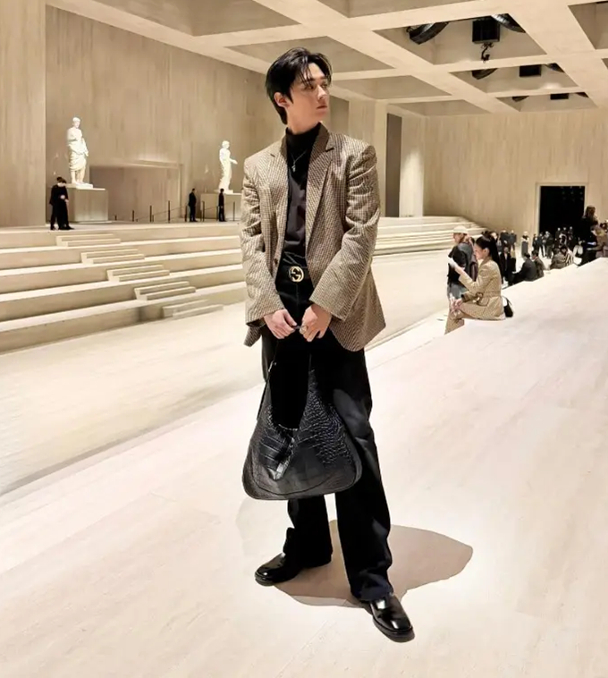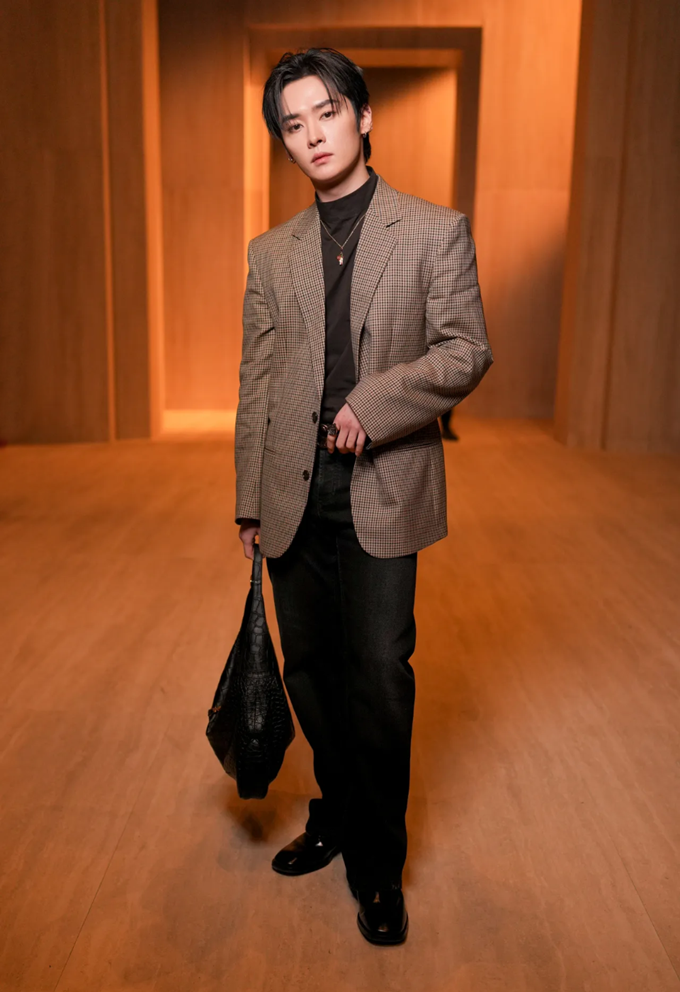 그룹 스트레이 키즈(Stray Kids)의 리노가 클래식한 체크 슈트룩으로 구찌쇼를 빛냈다.