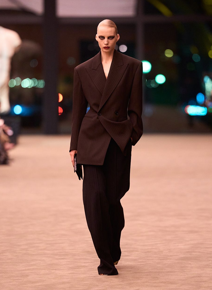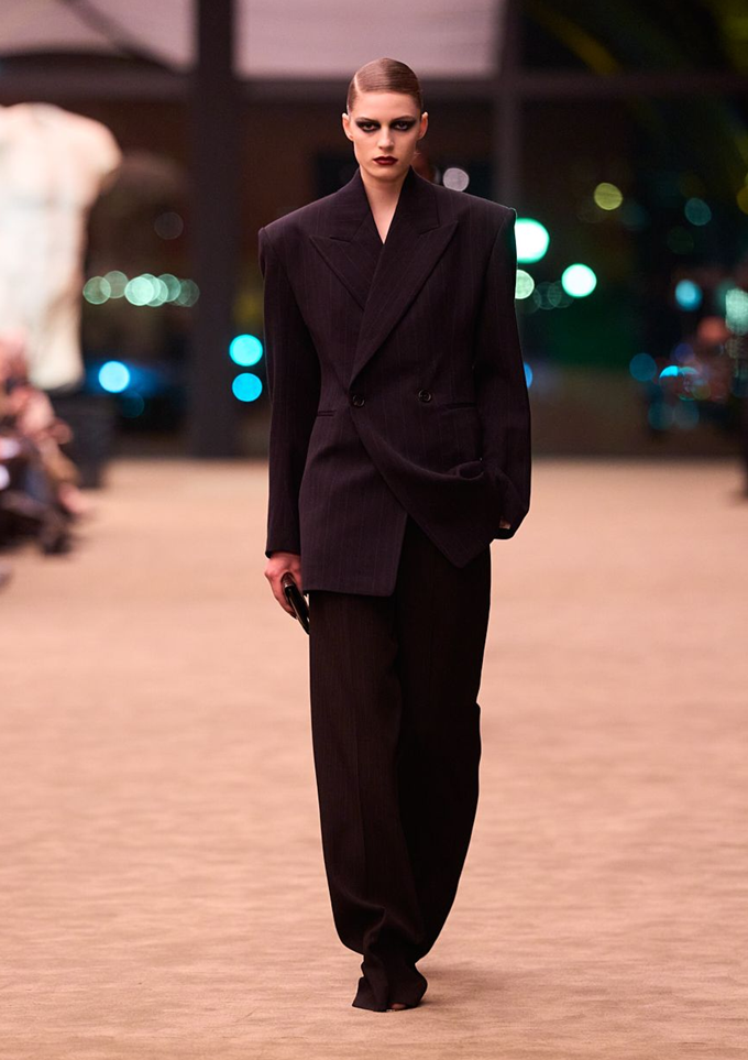 생 로랑을 이끄는 안소니 버카렐로(Anthony Vaccarello)는 지난 2016년 생 로랑 크리에이티브 디렉터로 합류한 이후 80년대의 파워 숄더, 오버사이즈 실루엣, 대날카로운 실루엣으로 정의되는 하우스의 유산을 이어가고 있다.