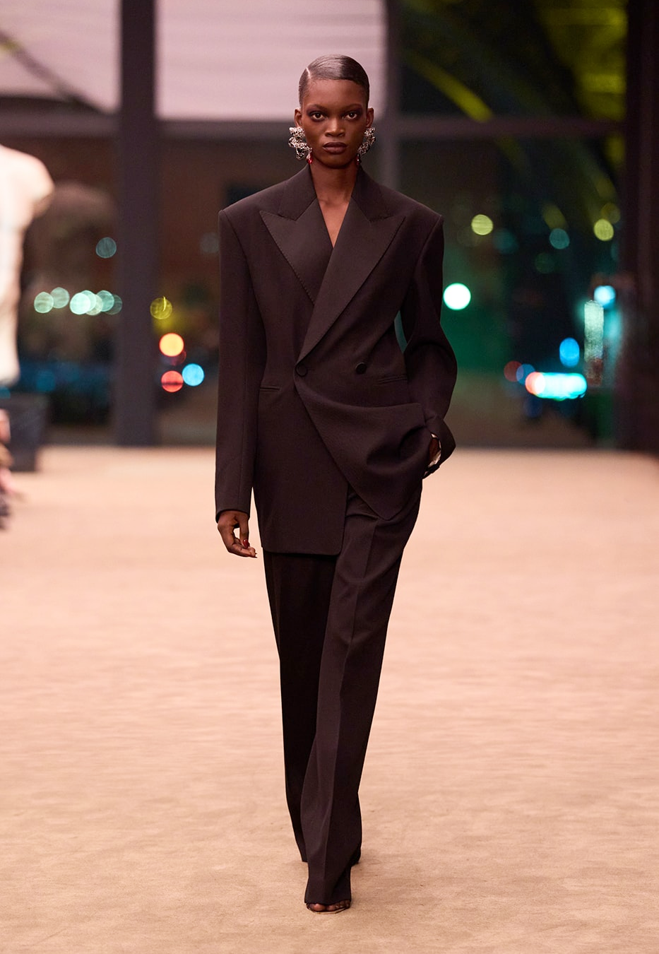 안소니 버카렐로는 이번 컬렉션에 이브 생 로랑이 1966년 데뷔 당시 여성복의 개념을 재정립한 블랙 턱시도 '르 스모킹'의 60주년을 기념했다.