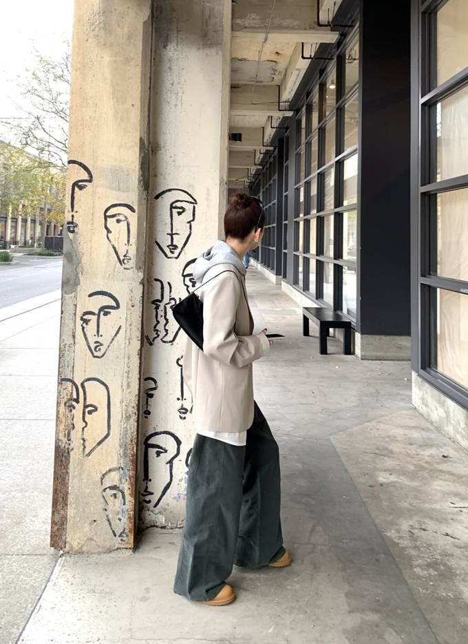 강민경, 패션 CEO가 봄 재킷을 입는 법! 후디와 와이드 팬츠 센스 매치 재킷 레이어드룩