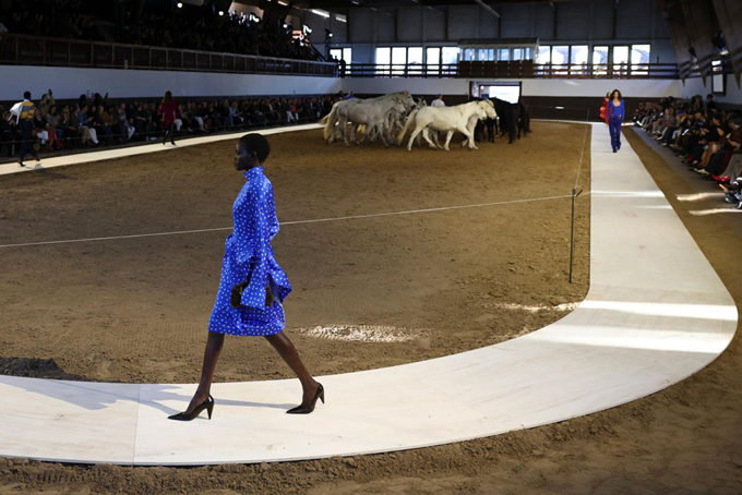 '붉은 말의 해'를 맞아 실제 운영되는 승마장을 런웨이 장소로 선택, 모래로 덮인 목초지를 따라 원형 런웨이가 펼쳐지며역동적인 에너지를 연출했다.