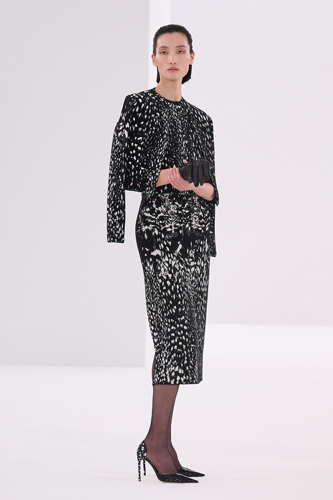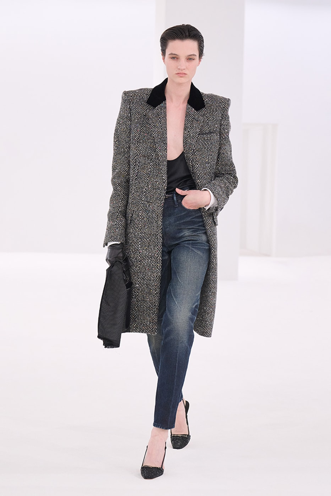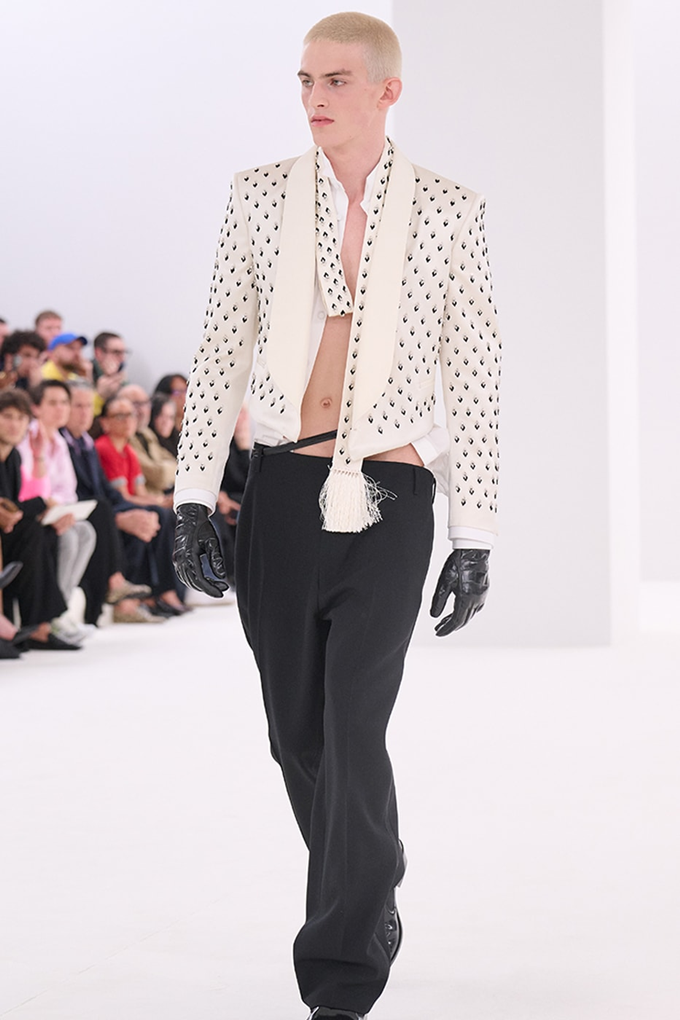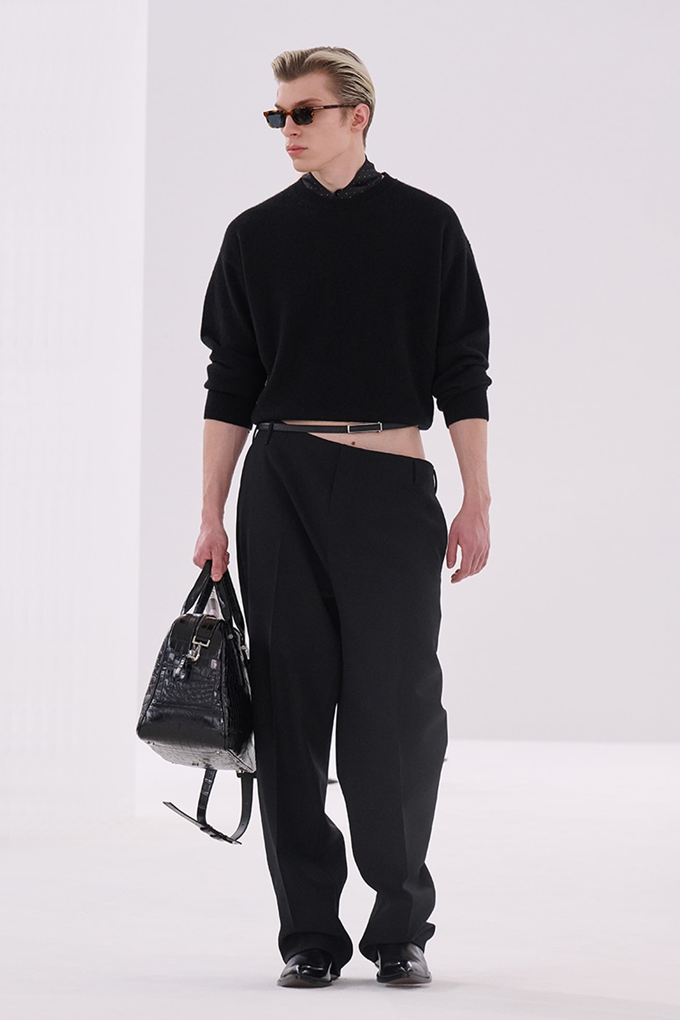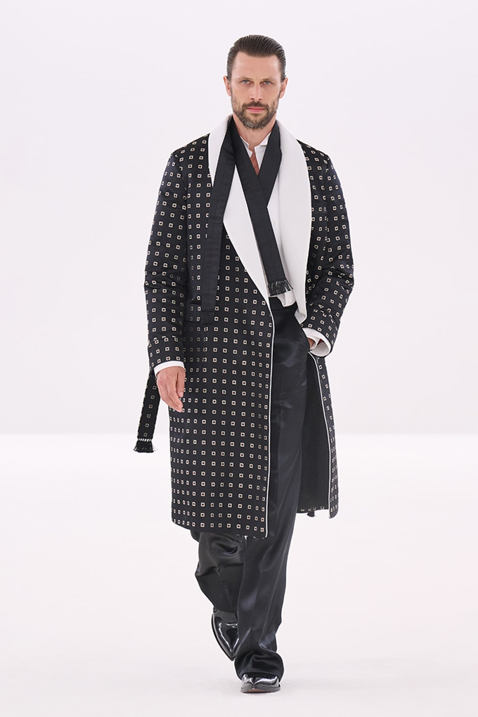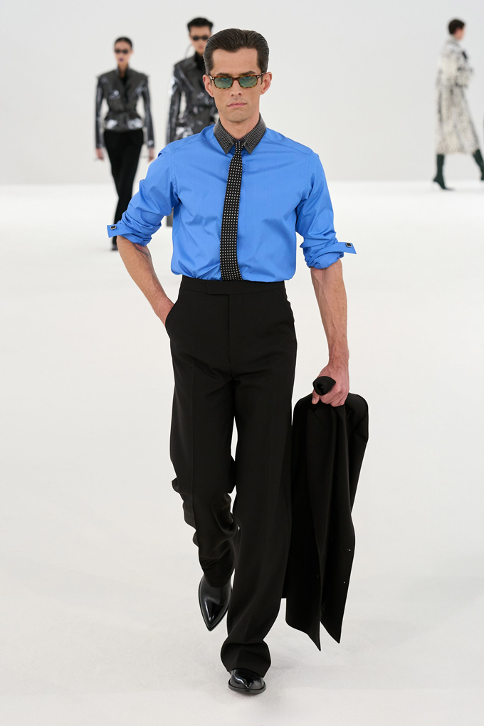 완벽한 수트의 날카로운 엄격함과 그 속에 숨겨진 어두운 일탈의 암시를 아름답게 조화시키며 시대를 초월하는 우아함의 향연과 섬뜩한 유혹의 정수를 선보였다.