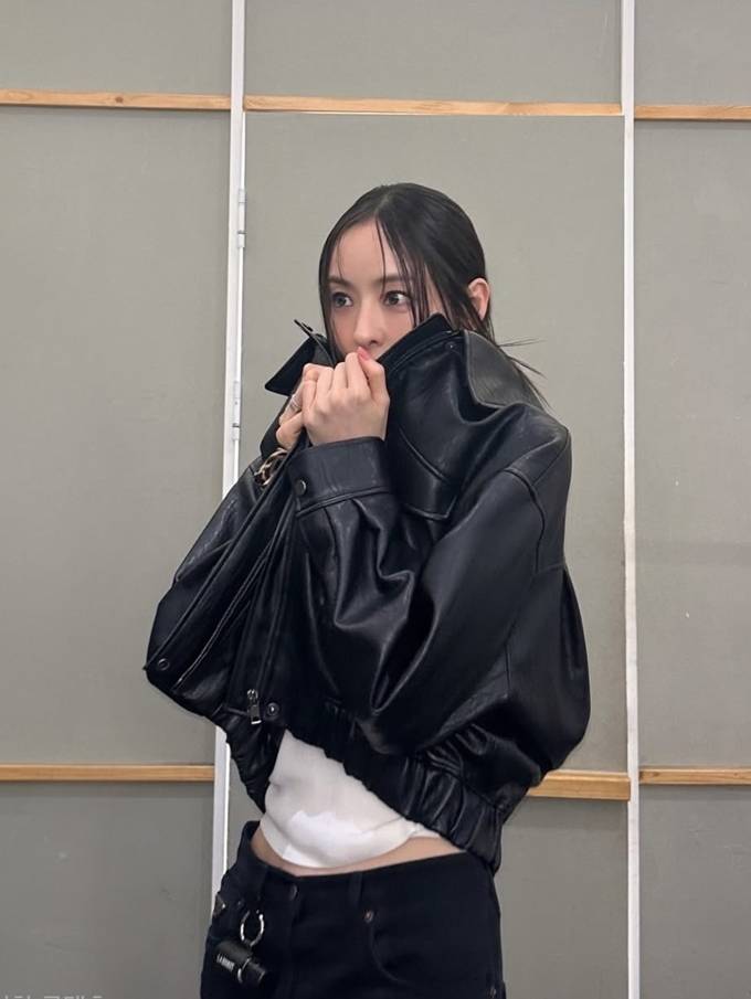 과하지 않으면서도 존재감 있는 레더 재킷 스타일링으로 ‘쿨 걸 룩’의 정석을 보여줬다.
