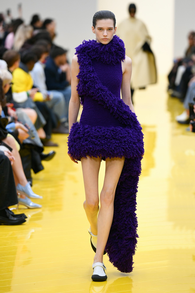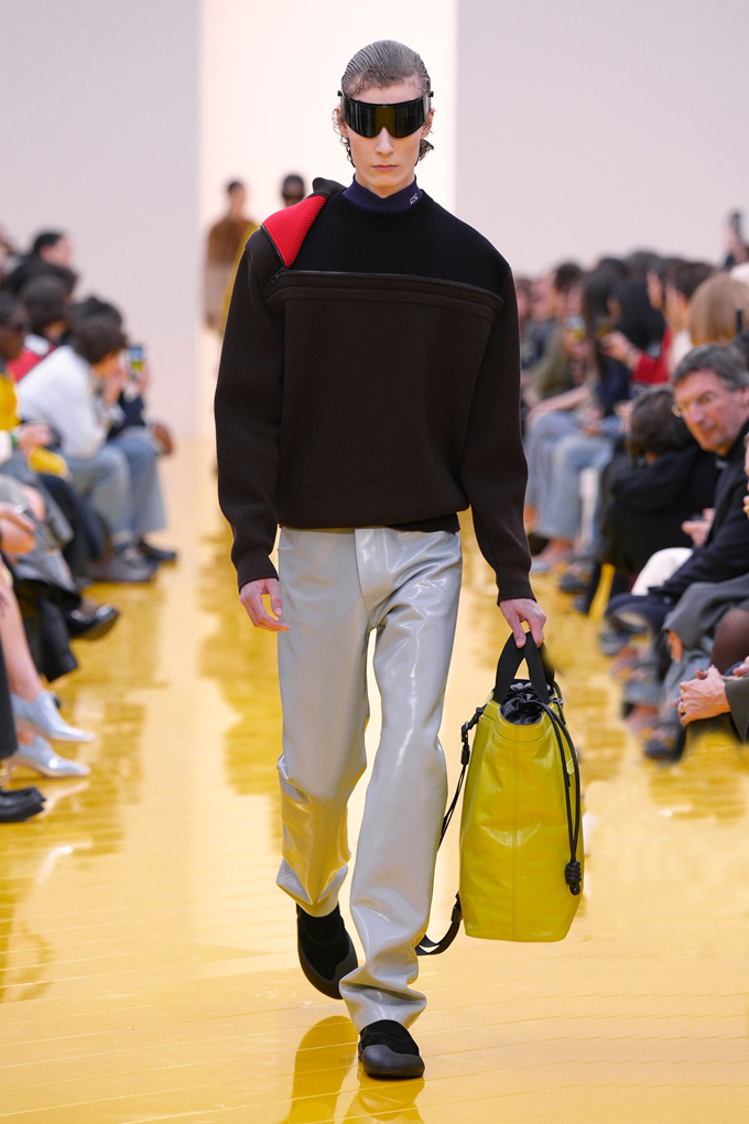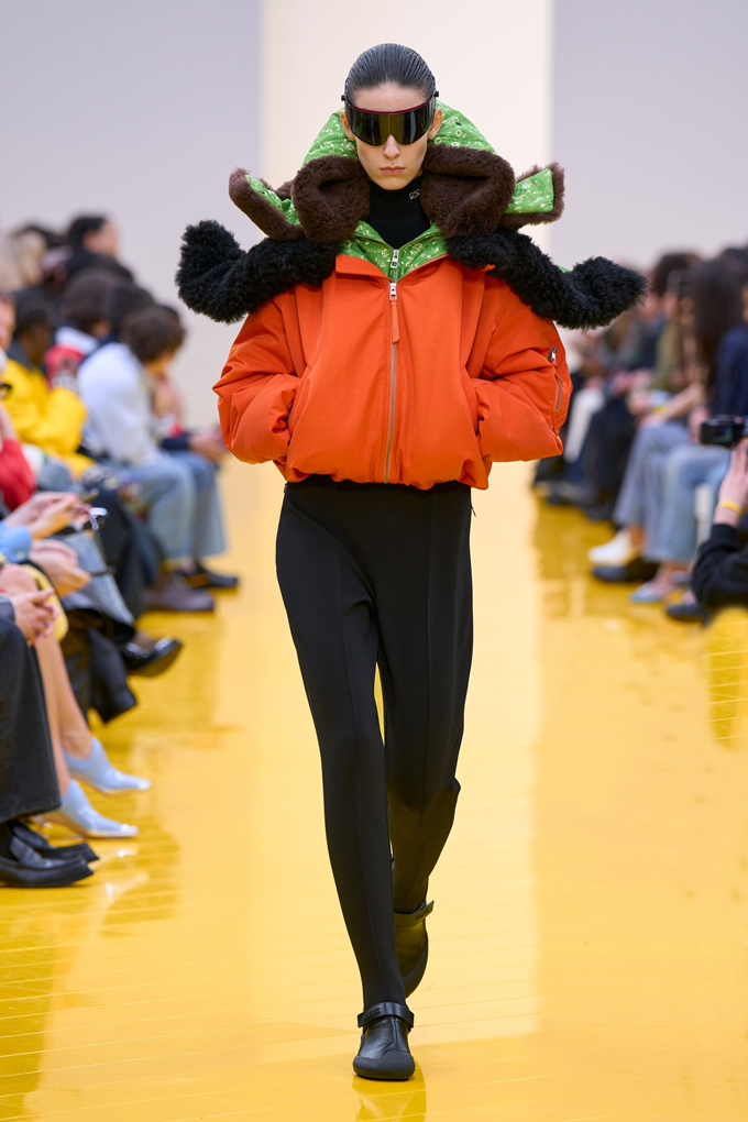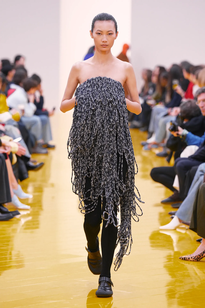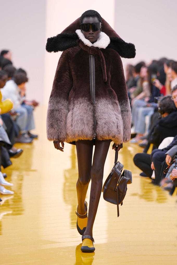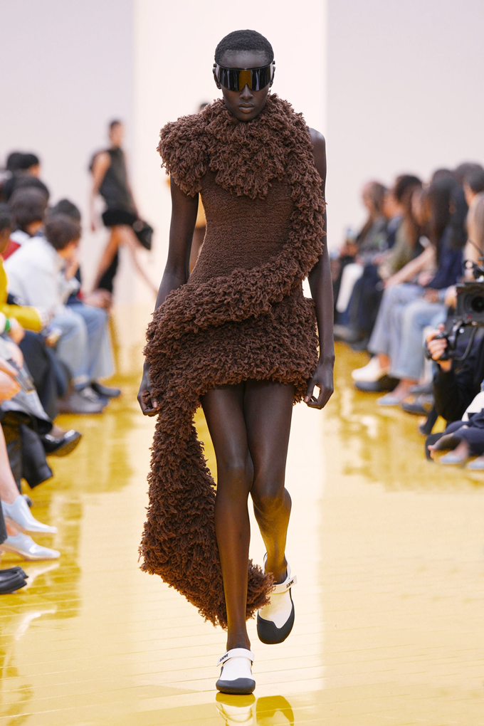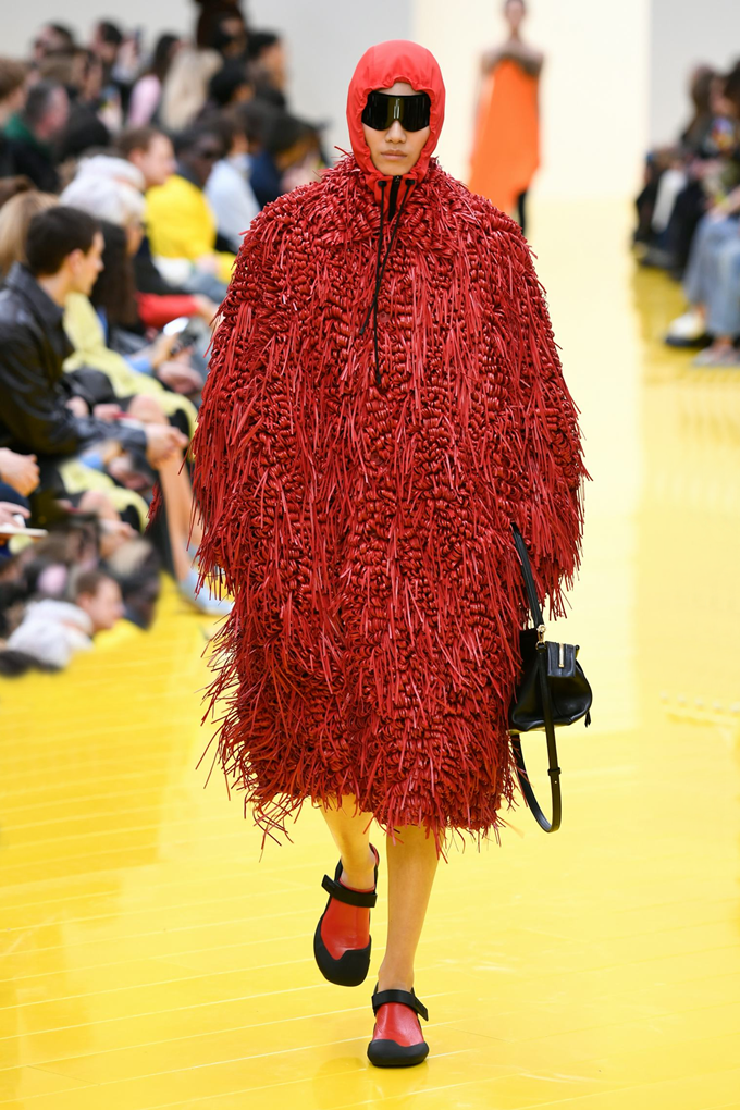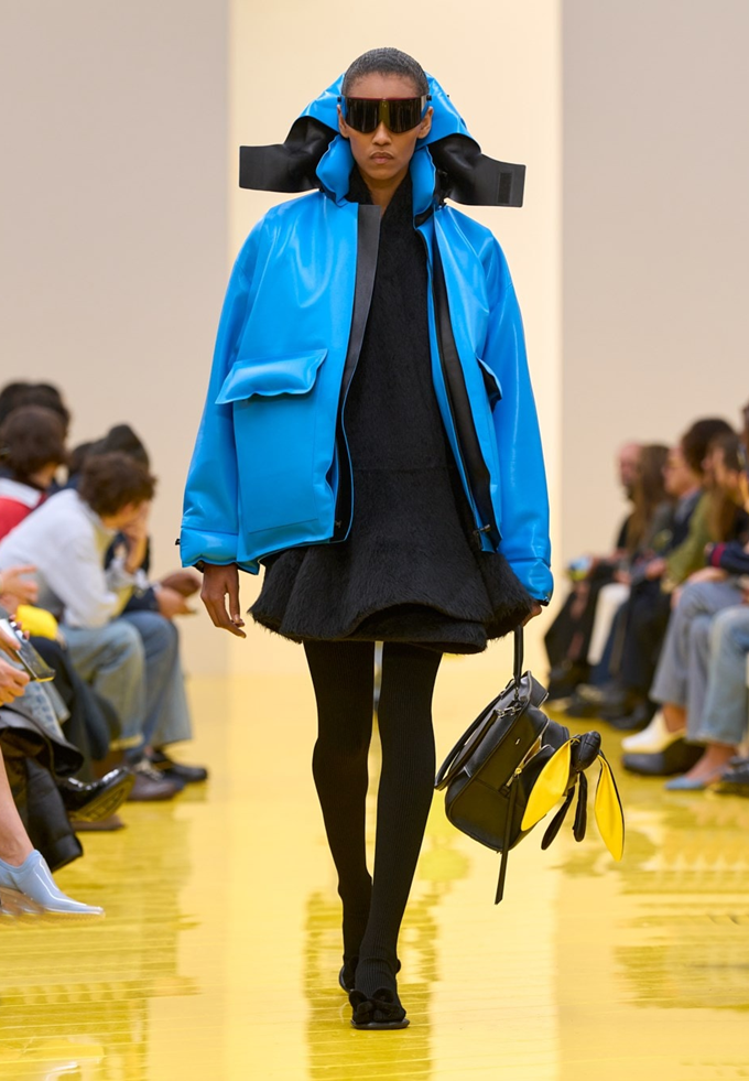 실루엣은 과장된 비율과 비대칭 컷팅 사이에서 조화를 이루고 강렬한 색상과 구조적인 소재는 움직임과 입체감을 만들어내며 창의적인 뉴 로에베룩을 창조했다.