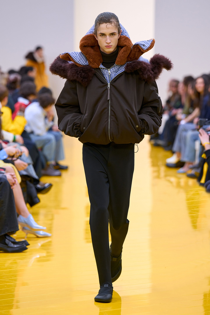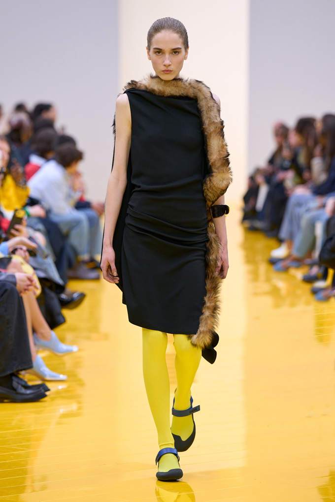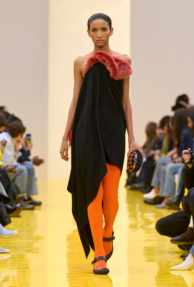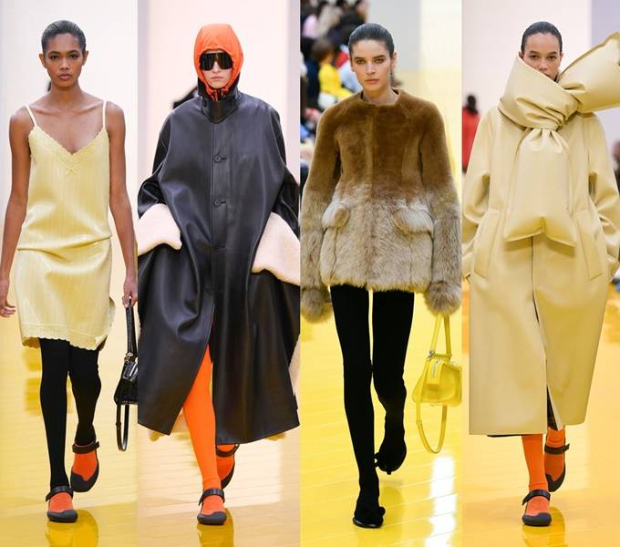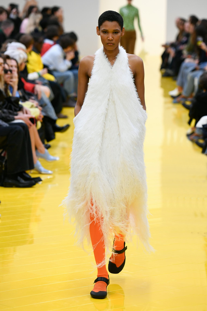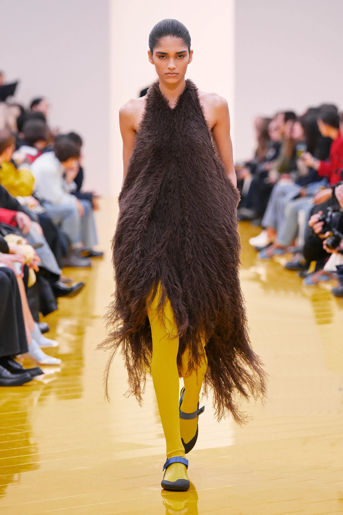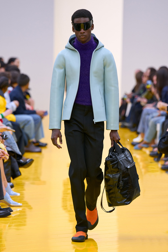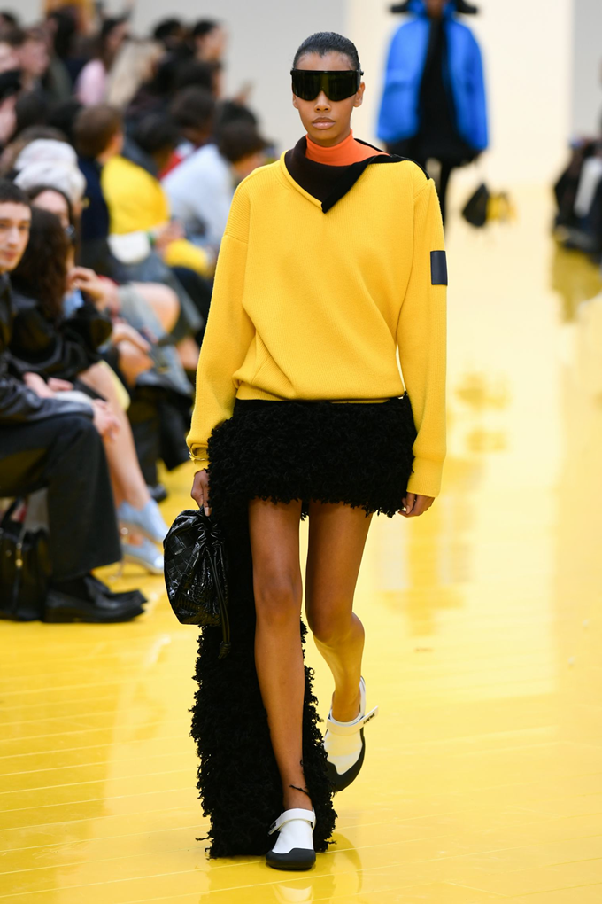 실루엣은 과장된 비율과 비대칭 컷팅 사이에서 조화를 이루고 강렬한 색상과 구조적인 소재는 움직임과 입체감을 만들어내며 창의적인 뉴 로에베룩을 창조했다.
