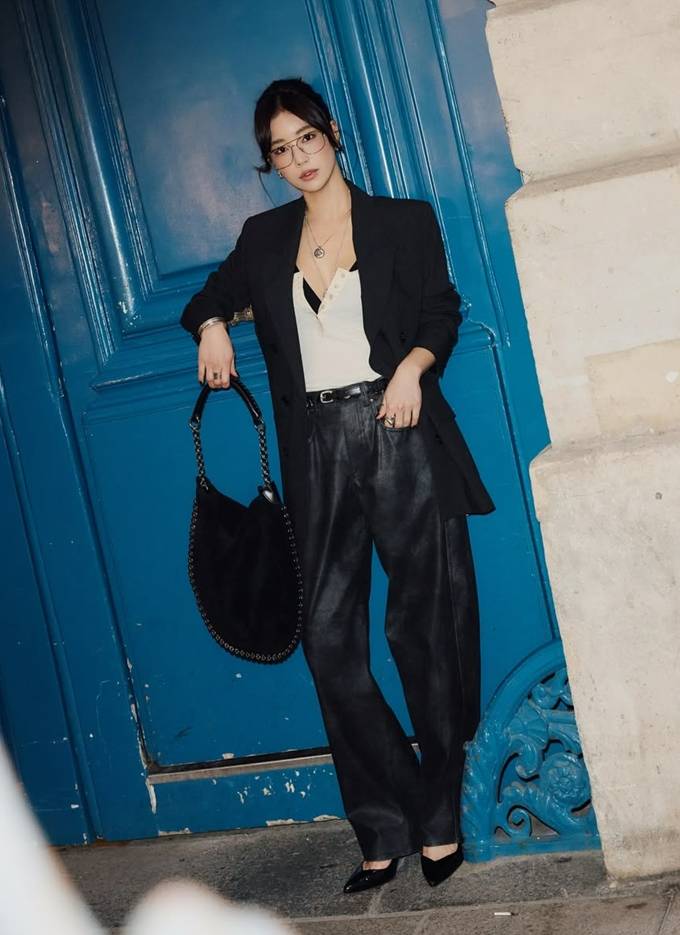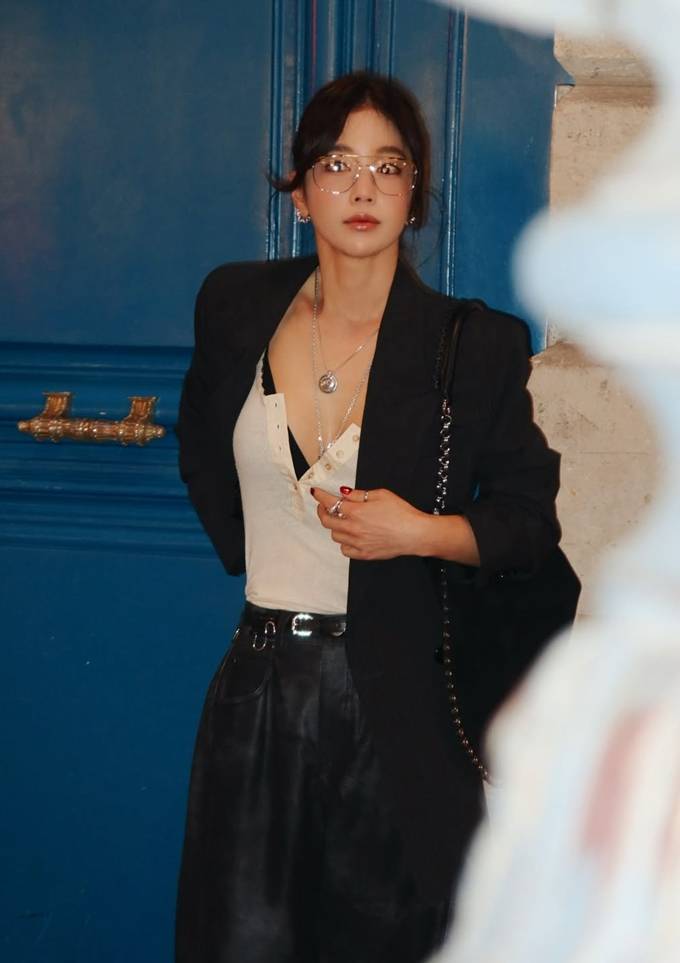 배우 기은세가 깊게 파인 슬립 톱에 재킷을 레이어드한 프렌치 시크룩으로 파리의 낭만을 제대로 즐겼다.