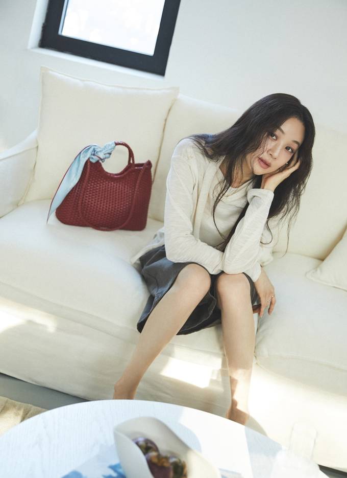 공개된 화보에서 정려원은 가벼운 니트 카디건 셋업과 레더 스커트, 또 심플한 트렌치코트를 매치한 봄 페미닌룩으로 감각적인 스타일링을 완성했다.