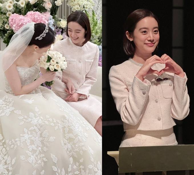 가수 겸 배우인 우혜림이 멋과 품격을 다 챙긴 트위드 슈트 하객룩으로 결혼식 사회까지 멋스럽게 소화했다.