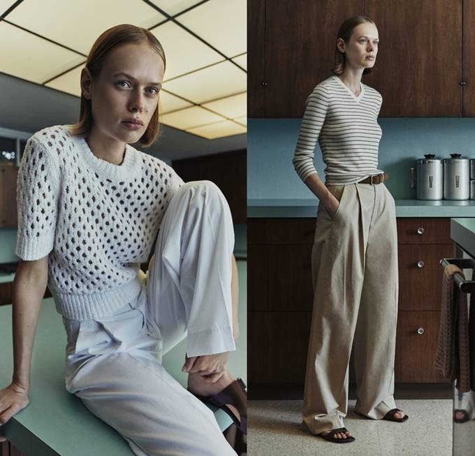또한 크롭 및 슈렁큰(shrunken) 스타일의 상의를 여유로운 핏의 트라우저나 A라인 스커트와 매치해 건축물에서 볼 수 있는 균형 잡힌 비례감을 스타일링으로 구현했다.