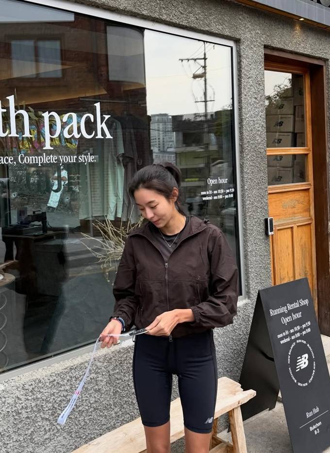 유이, 이유있는 탄탄 바이커 쇼츠 핏! 놀라워 하프 마라톤 완주 레깅스 애슬레저룩