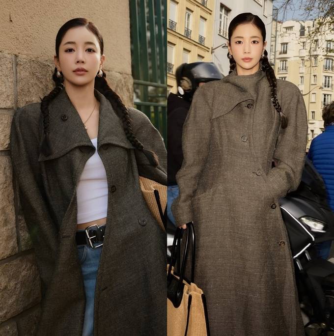 기은세, 파리 거리 누빈 42세 걸리시 미모! 양갈래 헤어에 테일러링 실루엣 롱 코트룩
