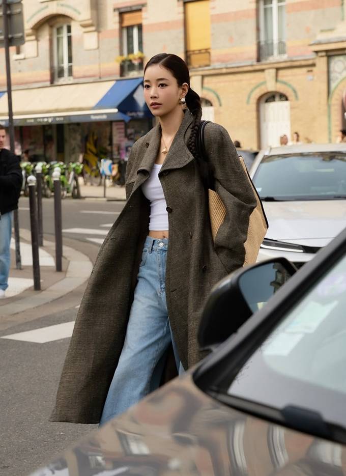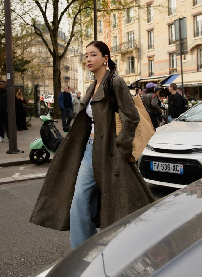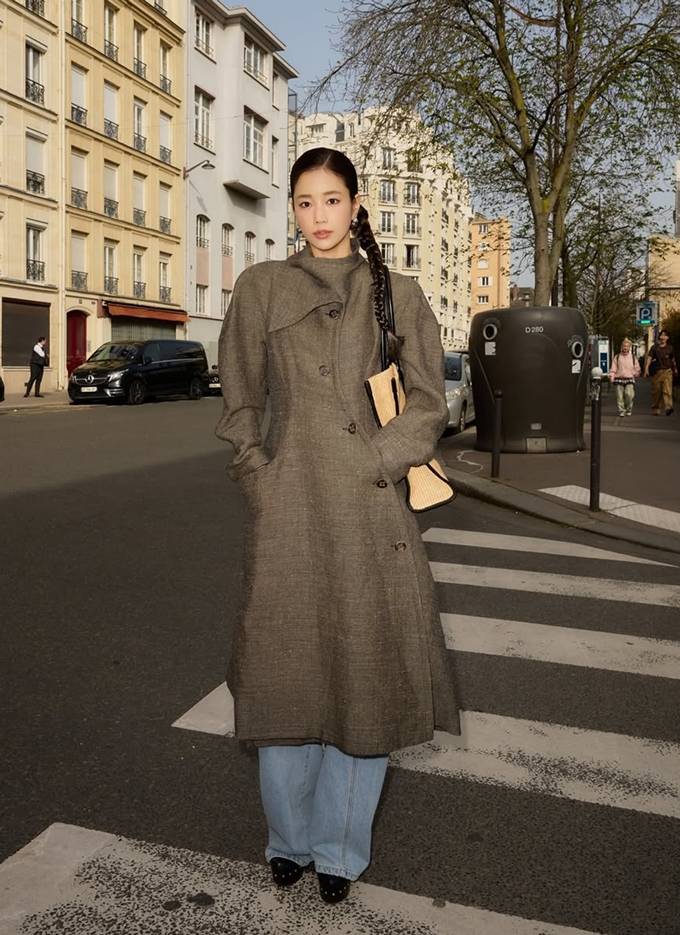 배우 기은세가 파리에서 구조적 테일러링 실루엣의 롱 코트룩으로 클래식하면서도 우아한 분위기를 자아냈다.