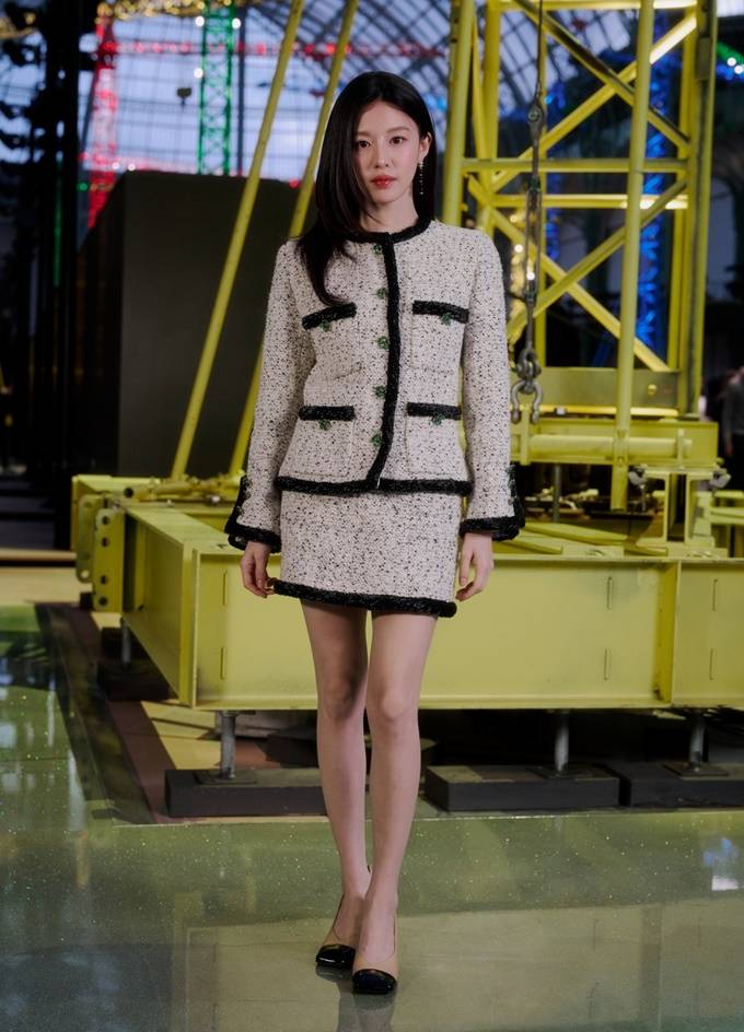 배우 고윤정이 단아한 분위기의 클래식한 트위드 슈트룩으로 샤넬쇼를 빛냈다.