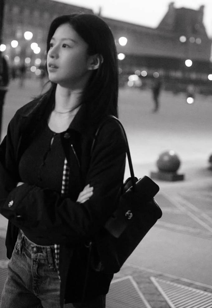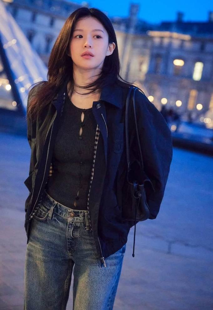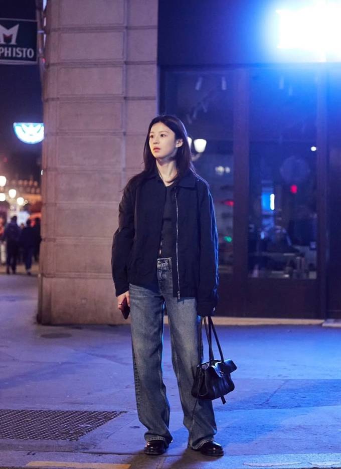 배우 고윤정이 블루종 집업 재킷과 청바지 산책룩으로 파리의 밤을 즐겼다.