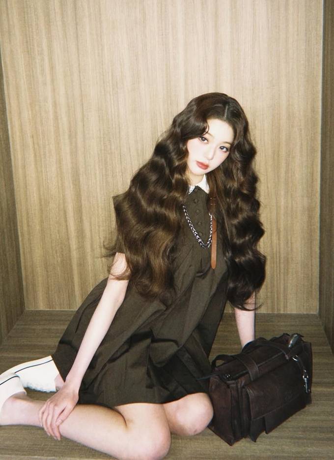 그룹 아이브의 장원영이 초콜릿 브라운 컬러의 로맨틱한 드레스룩으로 인형 같은 걸리시 미모를 발산했다.
