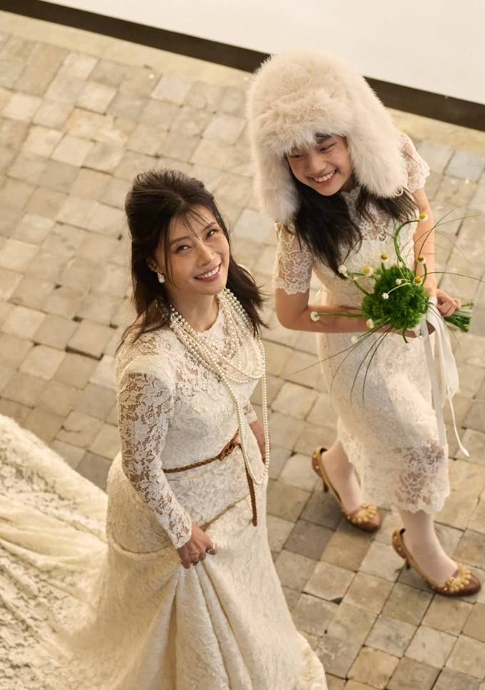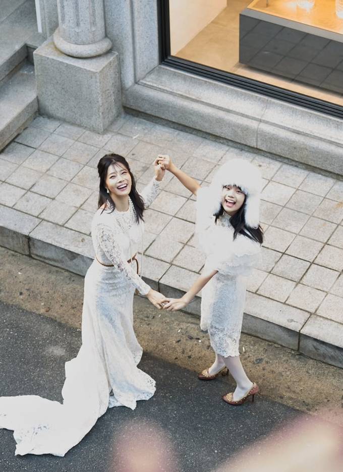 공개한 사진에서 유선과 유선의 딸은 순백의 화이트 드레스와 그레이 슈트, 또 청바지와 화이트 티셔츠를 똑같이 차려 입은 모녀 시밀러룩으로 닮은꼴 미모를 뽐냈다.