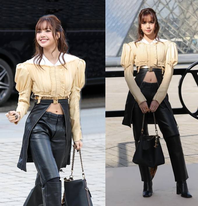지난 2024년 7월부터 루이비통 앰버서더로 활동하고 있는 리사는 버터 옐로우 컬러 크롭탑과 블랙 레더 스칸츠를 매치한 로맨틱한 레더룩으로 스포트라이트를 받았다.