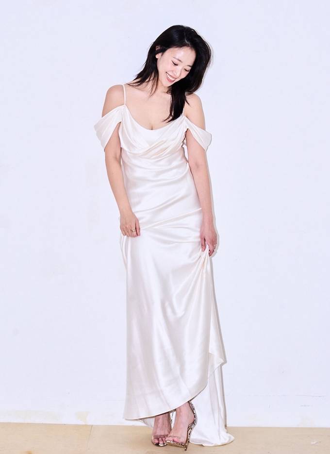 배우 전혜진이 아이보리 오프숄더 슬립 실키 드레스룩으로 우아미를 뽐냈다.