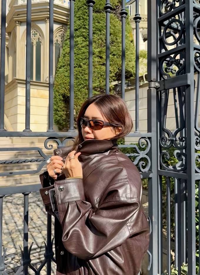 공개한 사진에서 채정안은 바지 위에 랩 스커트를 레이어드한 스칸트 스타일에 집업 레더 재킷을 매치한 출장룩으로 힙하면서도 스타일리시한 여행 스타일을 완성했다.